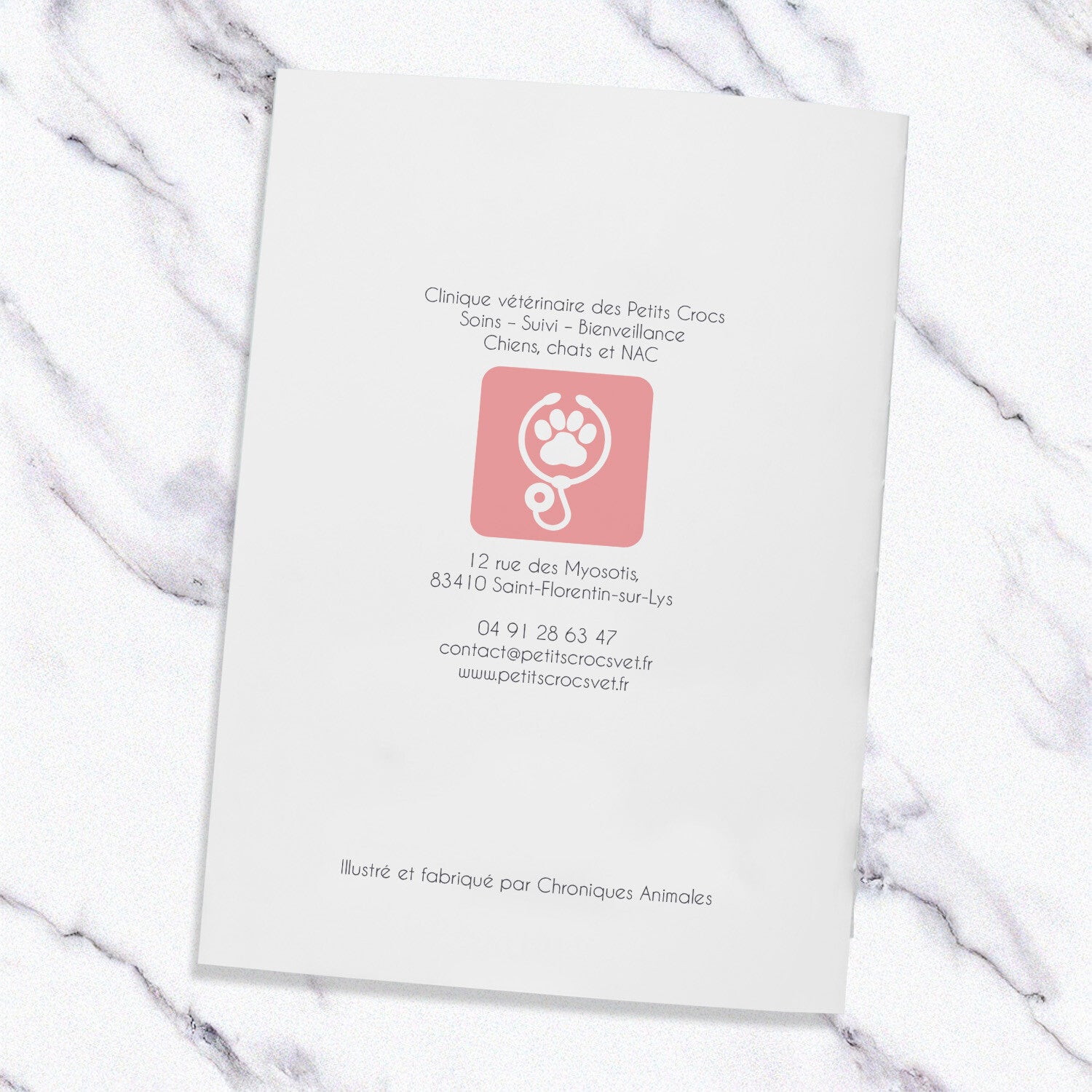 Ici, l'exemple d'un carnet de santé pour chien, réalisé pour la clinique Les Petits Crocs.