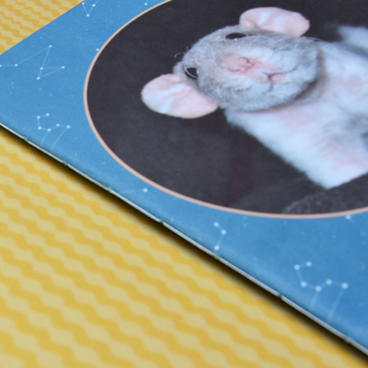 Ton rat est un aventurier dans l’âme ? Le thème Espace est fait pour lui (et pour toi aussi, si tu adores l’univers, les planètes, les galaxies). Ce carnet de santé accompagne ton rat dans toutes les étapes de sa vie, du premier câlin jusqu’aux visites chez le vétérinaire. Et grâce à la photo sur la couverture, c’est un carnet vraiment unique, à son image.