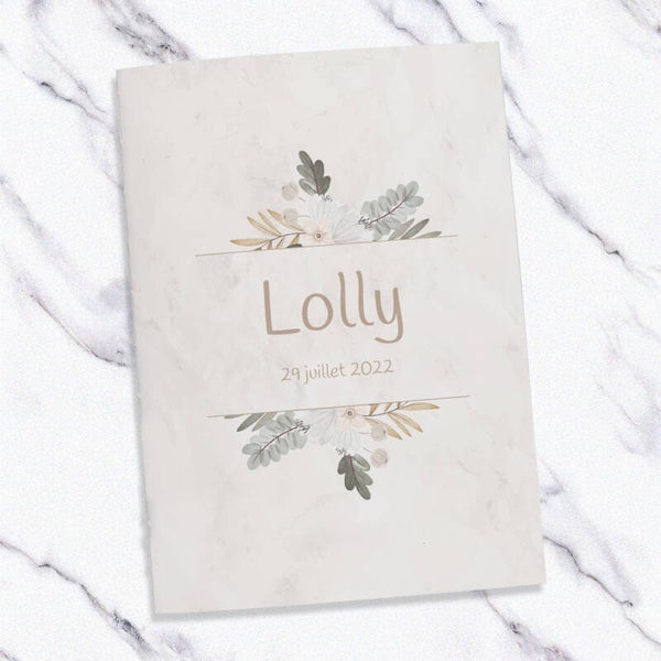 Personnalisé avec sa photo, son prénom et sa date de naissance, ce carnet devient un bel objet rempli d’émotion et de souvenirs 🌱