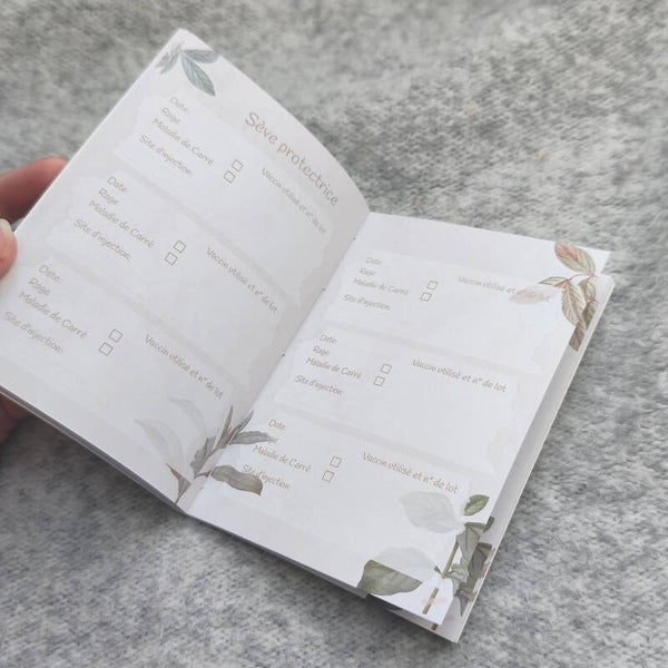Le thème Herbier mêle illustrations botaniques et ambiance apaisante pour t’offrir un joli support pratique, pensé avec amour pour le suivi de ton petit compagnon.