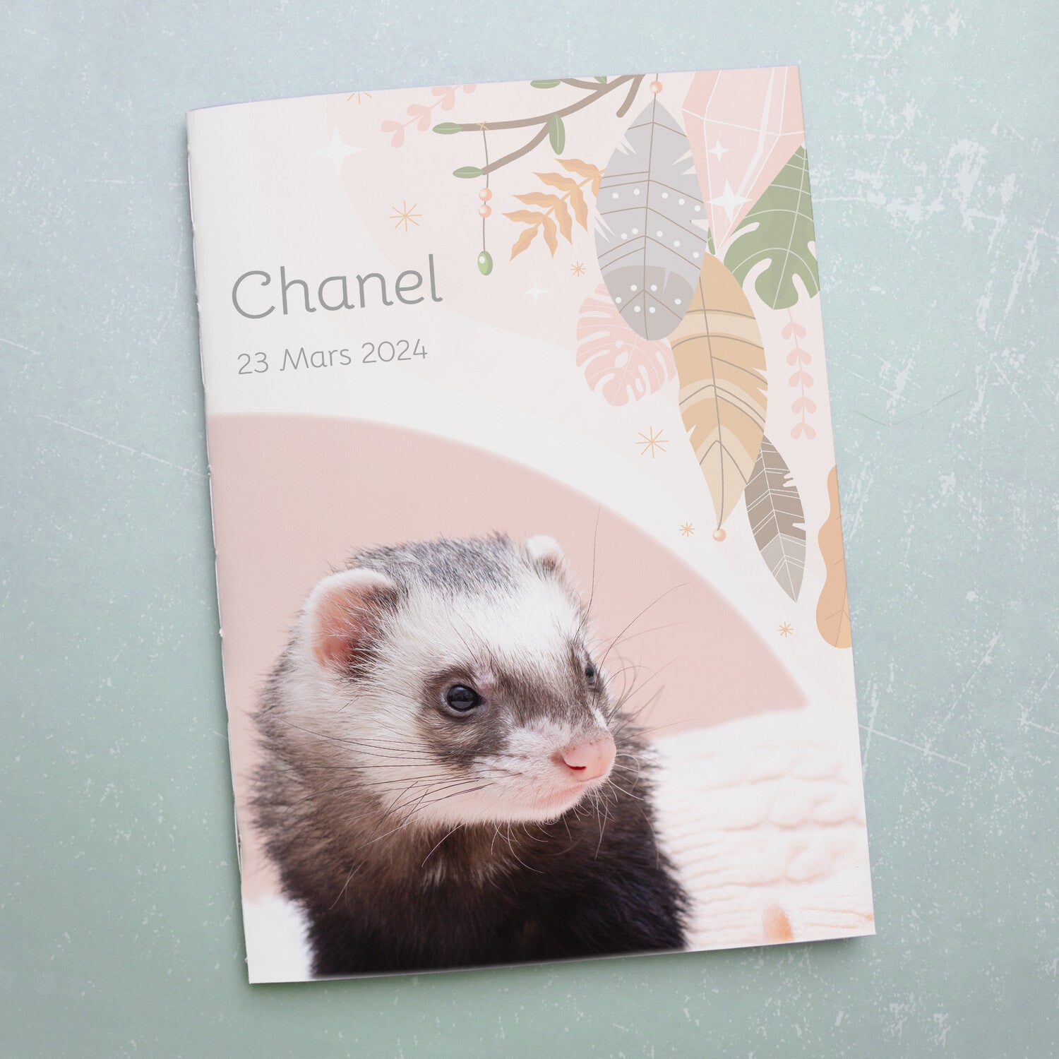 Motifs de plumes, teintes poudrées, ambiance chaleureuse… Ce carnet est parfait pour les furets au tempérament doux mais affirmé, ou tout simplement pour les humains amoureux du style bohème.