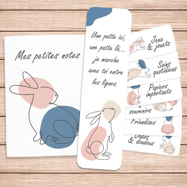 🌟 Pack de rentrée lapin – Carnet, marque-page & étiquettes (4 coloris)
