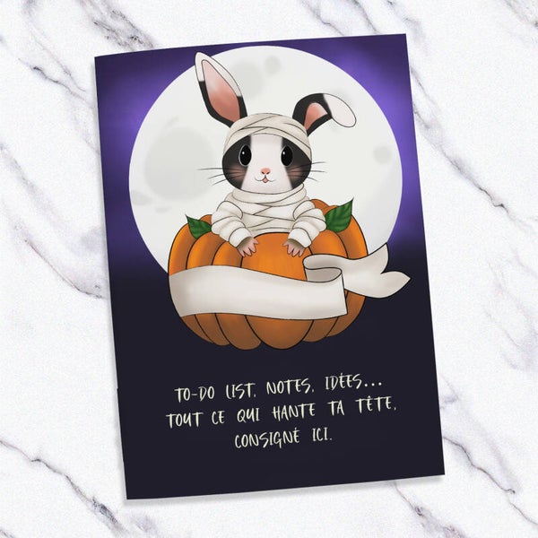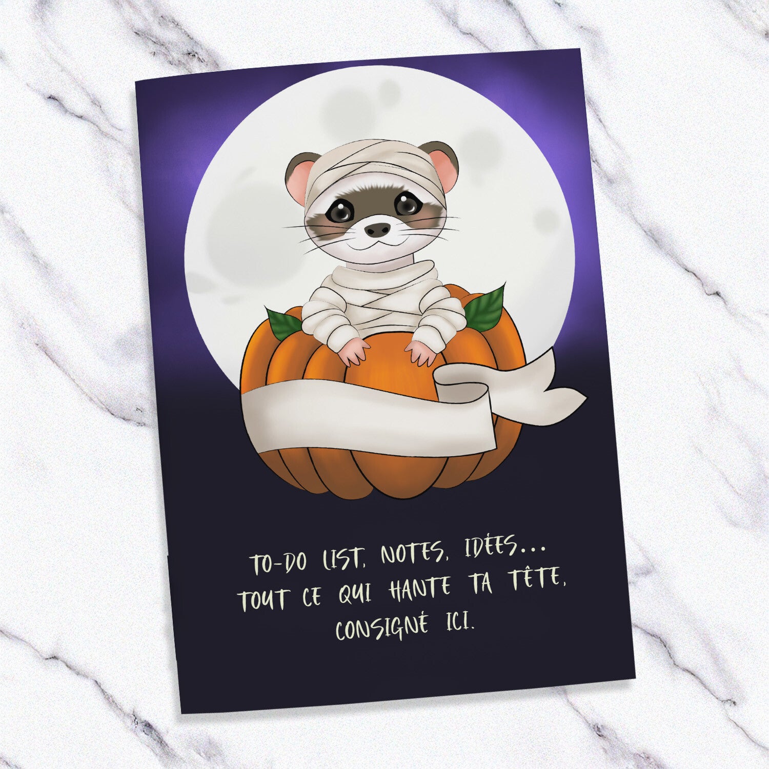 Voici le carnet de notes Halloween illustré avec amour pour mettre à l’honneur les petits compagnons dans leurs plus beaux costumes de saison !